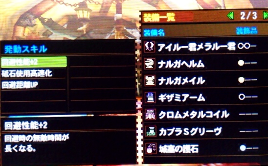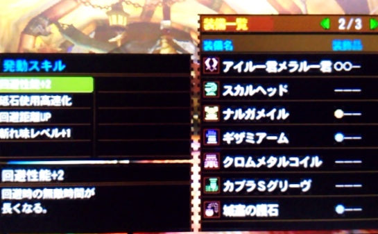 ナルガ胴系統倍化装備にしたい。