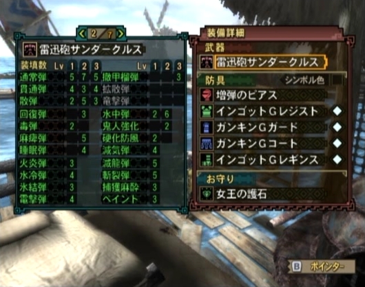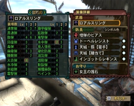 ベターなガンの組み合わせ。麻痺弾Lv2が5発撃てるのが魅力的。