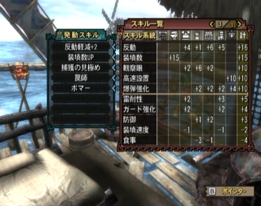 基本、『装填数UP』・『反動軽減+2』・『罠師』・『ボマー』のスキルが付けば何でも