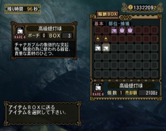 yuuさんリクの灯魚竜2頭の狩猟クエに同行した際、『高級提灯球』をひさびさにゲット!
